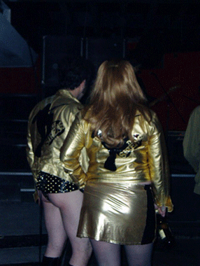 Bend izgleda odlično, Dave je opet bez pantalona, samo u kožnim tanga gaćama sa ovećom futrolom za pištolj, napred. Svi u srebrnim kostimima. Žilavim skivi pre koncerta. Miguel me fotografiše sa Muffy, D. i Melody. Kad sam kreten, pa se nisam setio ranije.