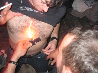 D. sedne za računar internet kluba, Miguel se opušta uz pivo u bašti, ostatak ekipe klopa, a ja naletim na promotera i on me odvede do radnje u kojoj pronađem benzin za upaljač. Vratim se do benda, pokupim ih sve i odemo na poslednje piće u Subi. D. mi sipa benzin u upaljač i palim prvu pljugu. Mogu vam reći da već u startu ima znatno bolji ukus!!