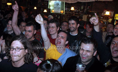 Uglavnom, pre Sirens sviraju Spins iz Negotina (bend tamošnjeg nam promotera, Luče). Jedno pola sata traje njihov nastup, a za to vreme se po prvi put posle 2 nedelje nađem za računarom i stignem da samo na kratko overim forum b92 i temu o ovoj turneji. Provalim super rokersku fotku Miguela iz Sente i pokažem mu kako je dobro ispao.